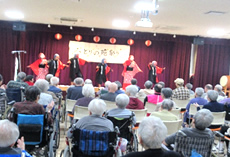 利用者様は手拍子をされたり、歌唱曲「上を向いて歩こう」では口ずさんだりと、楽しみながらも風情溢れるお琴の音色を堪能していらっしゃいました。
