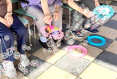 お天気の良い日が続いた8月半ば、ディサービスセンター松風にてしゃぼん玉レクを行いました。