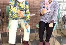 ディサービスセンター松風では日替わりでレクレーションを企画しており、天気に恵まれた9月3日(火)午後、屋外でシャボン玉を行いました。