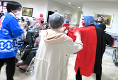 サンタとトナカイの司会進行のもと今年は【三曲会様】をお招きしてお琴の演奏を披露して頂きました。