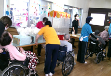 昼食ではいつもと違ったお祭りメニューが提供され、お好み焼き・焼きそばなどを楽しみ、皆さんとても喜んでおられました。