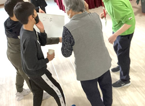 また、生徒の皆さんと利用者様が一対一でお話する場面では「静和荘のいいところはどこですか?」「ペットは飼ったことありますか?」など様々なお話しをされている様子も。