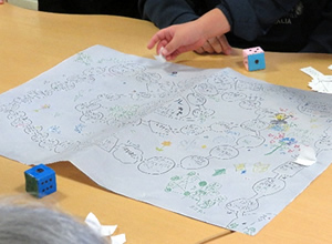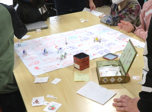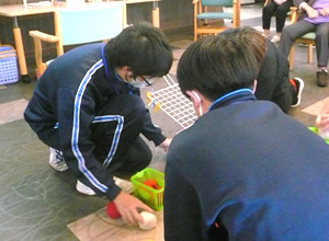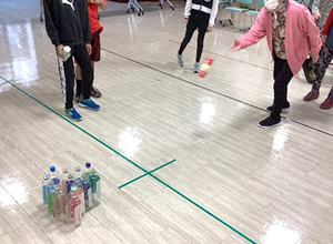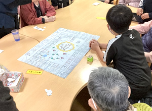 利用者様に向けて生徒の皆さんが考えた、糸電話しりとりやモルック、手作りの双六などをゲームの進行も含めて実施してくださいました。
